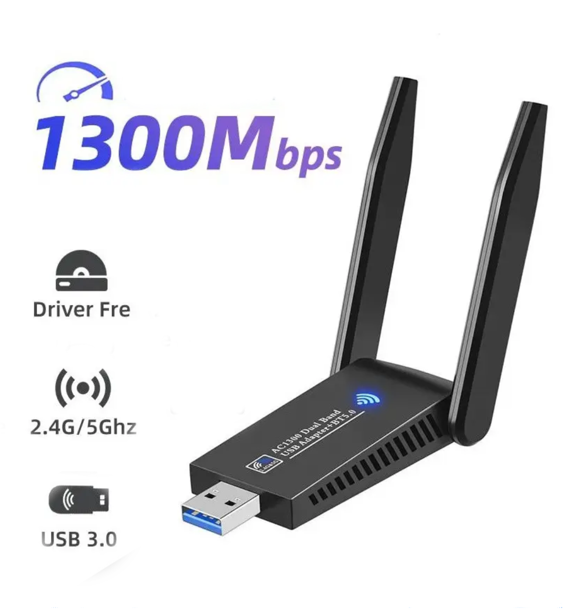 Дводіапазонний USB Wi-Fi адаптер з підтримкою 2,4 ГГц та 5 ГГц із швидкістю передачі даних до 1300 Мбіт/с - це пристрій, який призначений для бездротового підключення комп'ютера або іншого пристрою до бездротової мережі.