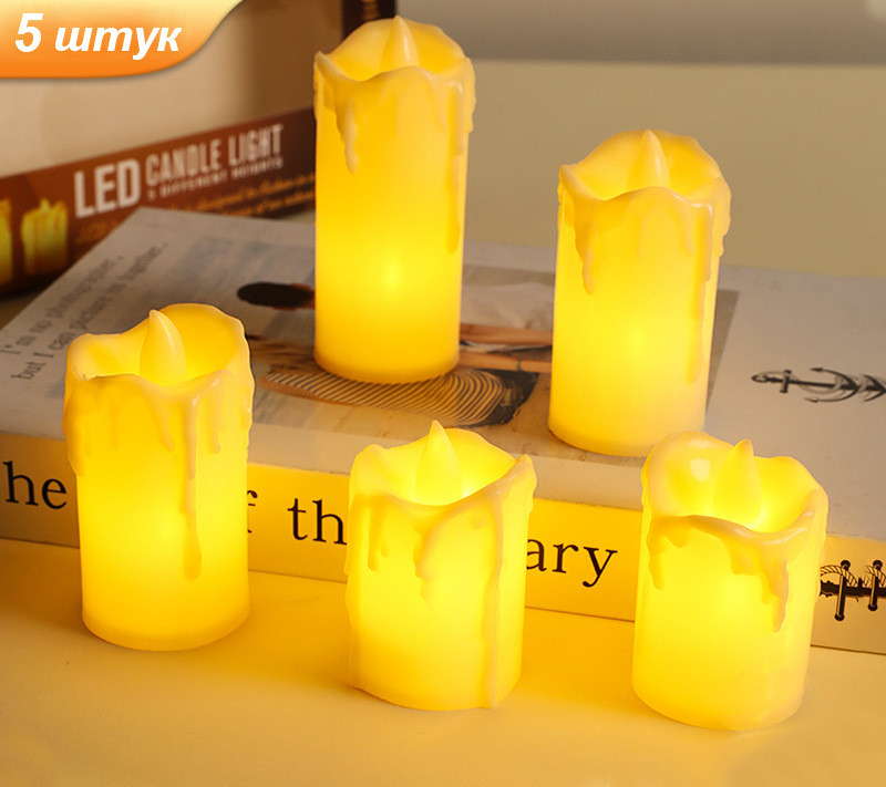 Набір із 5 штук - це чудова безпечна альтернатива звичайним свічкам. У них немає полум'я, крапель воску або ж диму. Використовується для декоративного освітлення, створення романтичної атмосфери, а в новорічний чи пасхальний період ці свічки абсолютно незамінний декор.